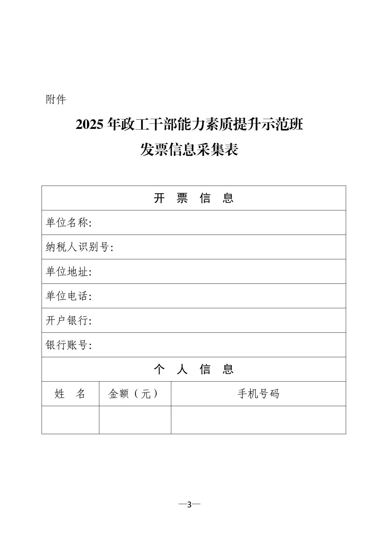 附件:2025年政工干部能力素质提升示范班发票信息采集表
